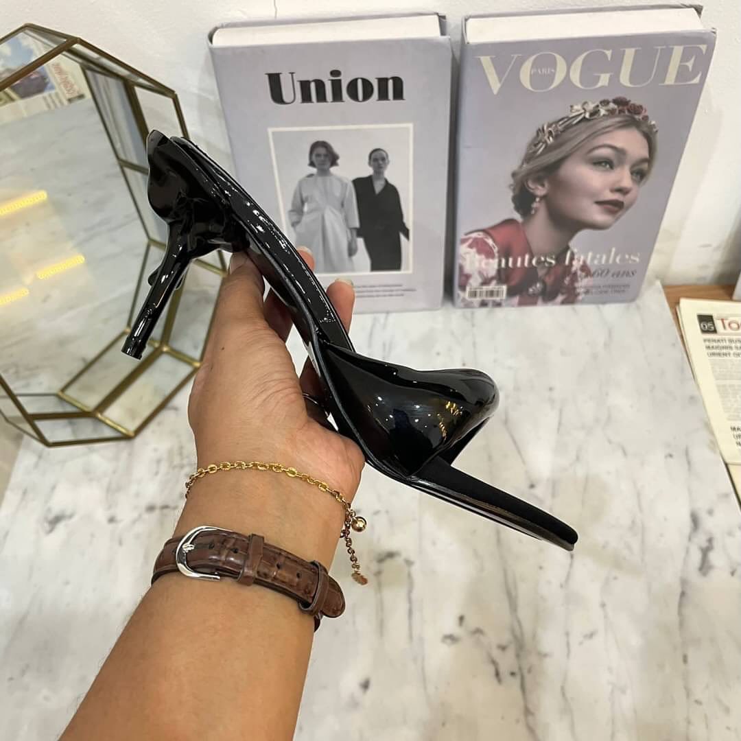Black Patent Leather High Heel Sandals with Padded Ribbon – 8.5cm Heel