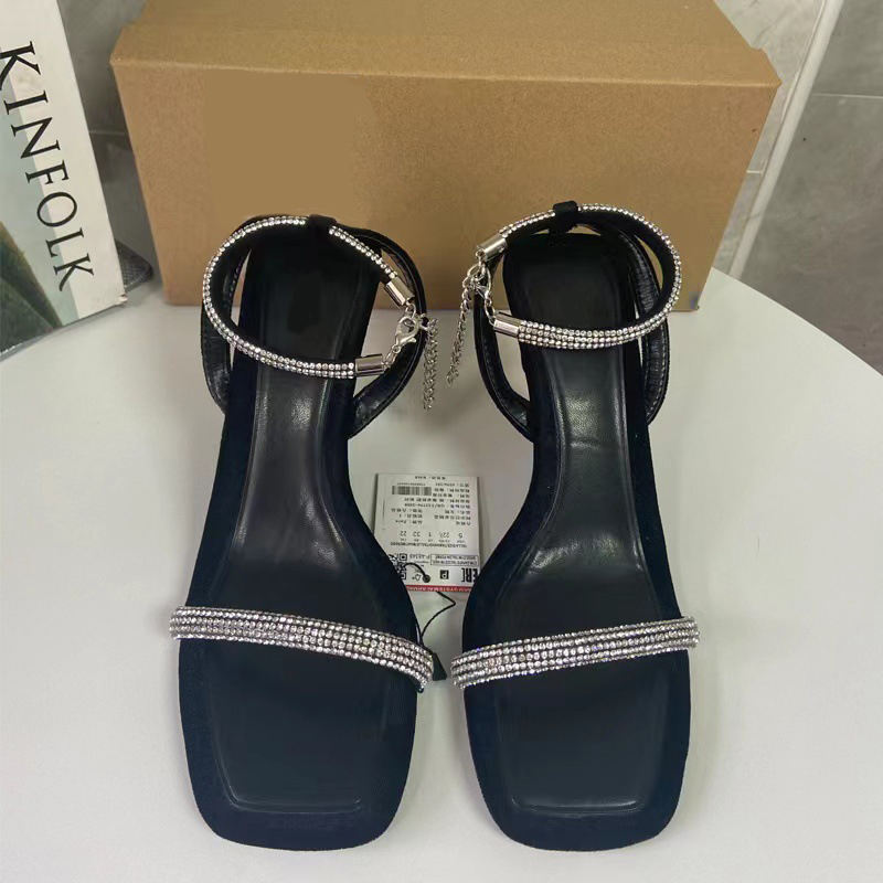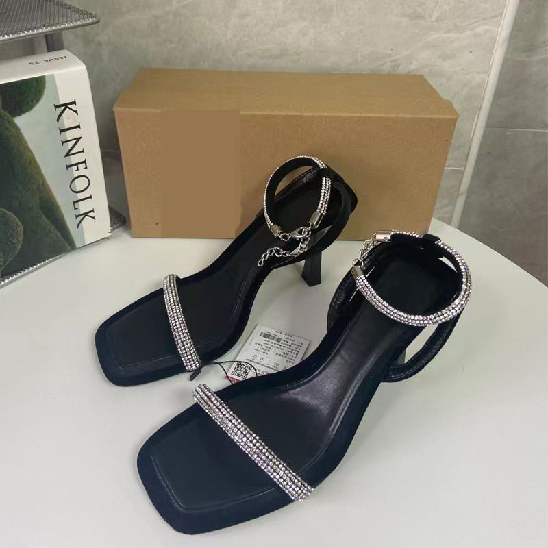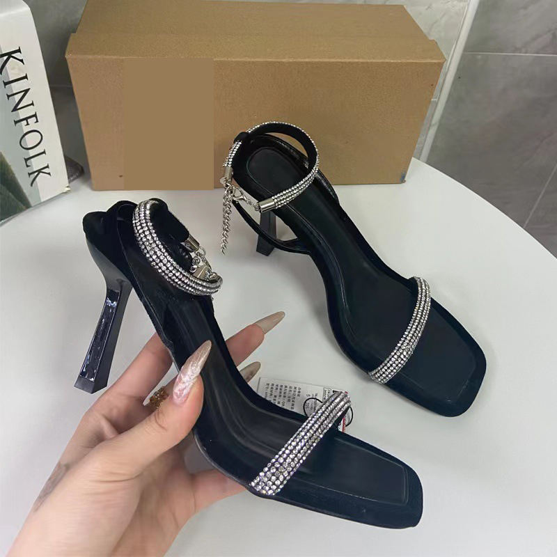 Open Toe Designer Sandals Ankle Strap Chain Suede Brand High Heels