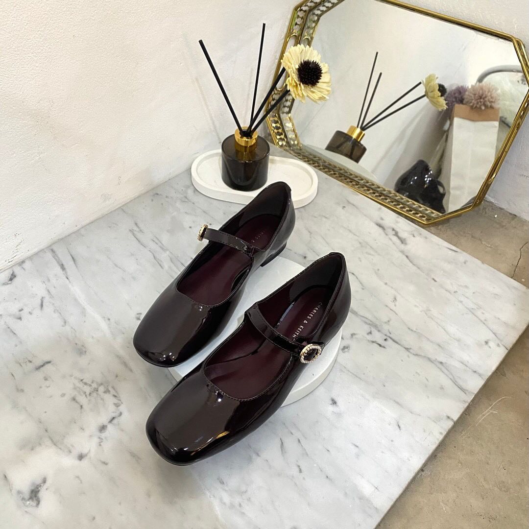 Women's Low Block Heel Sandals with Adjustable Ankle Straps - Patent Faux Leather